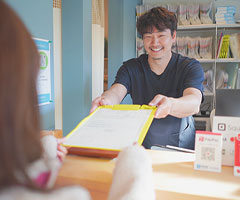 受付でご予約の確認を行い、問診票をお渡しいたします。